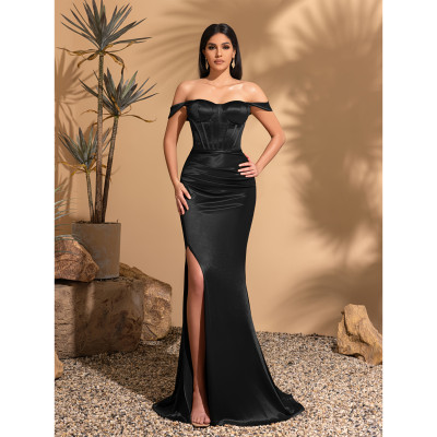 تألقي في مناسباتك الخاصة مع فستان ناعم طويل مكشوف الأكتاف المصمم ليبرز أنوثتكِ بأناقة فاخرة. تصميمه بفتحة عالية الخصر يمنحكِ مظهرًا جذابًا وانسيابيًا مثاليًا لحفلات الزفاف والمناسبات الرسمية التي تتطلب لمسة من التميّز والرقي.